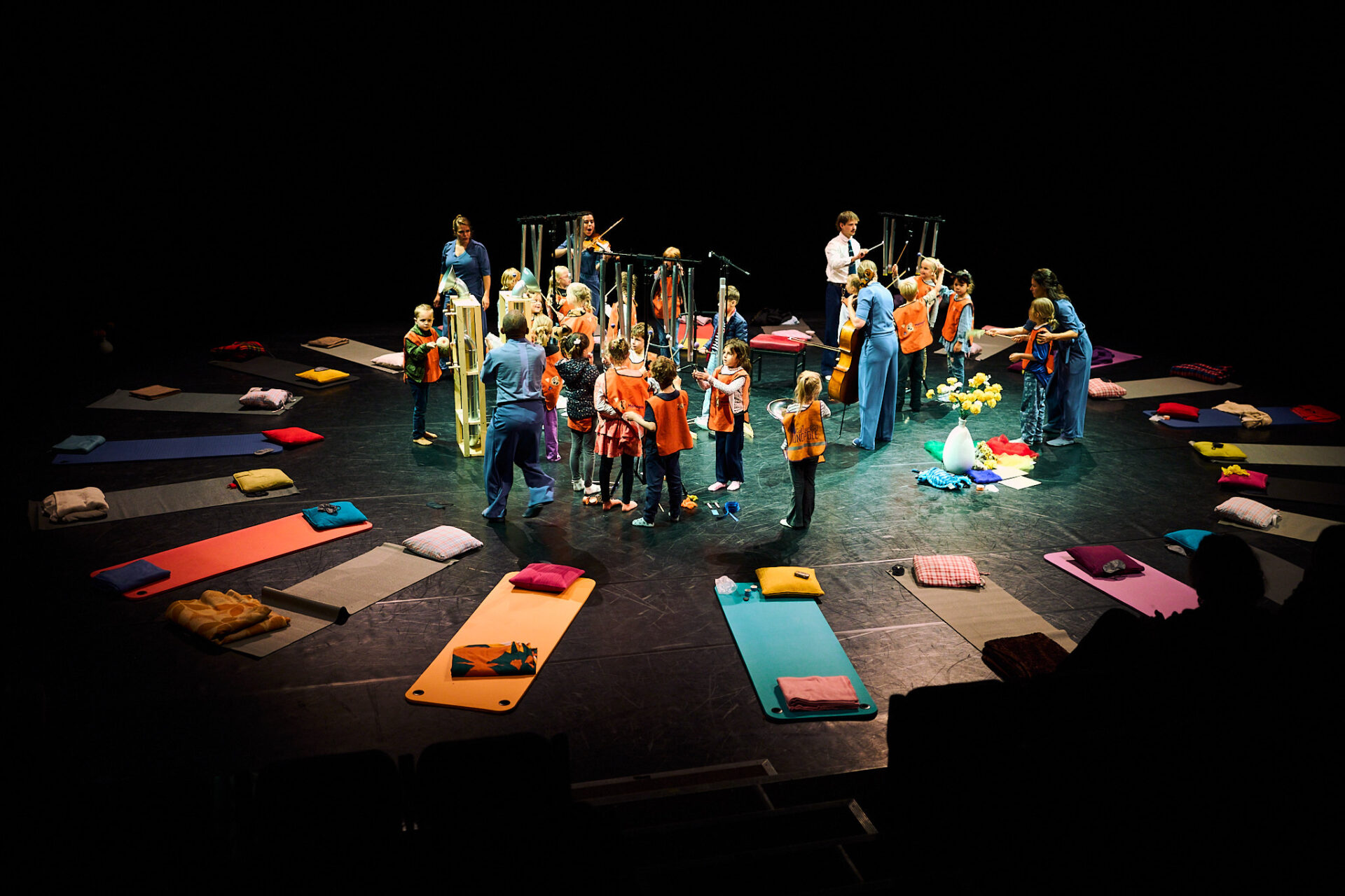Elke performance stemmen we af in interactie met ons jonge publiek. We bieden voorbereidend en/of verwerkend lesmateriaal met workshops vanuit spelen met klank, beweging, aanraking, reflectie en het maken van eigen composities.